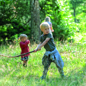 Der große Garten ist der Mittelpunkt der Jahreszeiten-Feste und bietet viel Platz zum Spielen und Entdecken, ausgestattet mit einem Seilklettergarten, Sandkasten, Matschküche, Bewegungsbaustelle sowie Klettergerüst, Schaukel und Rutsche.
