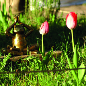 Der kleine Garten ist ein Sinnes- und Erlebnisgarten zum Riechen, Tasten, Schmecken, Schauen, Bewegen und hat einen Sandkasten, eine Bewegungsbaustelle sowie eine Holz- und Kreativwerkstatt. Hochbeete und Kräuterhügel mit Zitronenmelisse, Schnittlauch, Oregano und Rosmarin werden gemeinsam bewirtschaftet und gepflückt, z.B. für Vesper und Getränke. Vogelhäuser und Futterstationen laden zur Beobachtung der Vögel und anderer Tiere ein, z.B. Insekten oder Eidechsen.